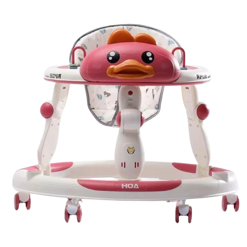 This charming baby walker features an adorable animal-themed toy tray. It encourages your child’s first steps with interactive fun. The walker provides safe support as your baby learns to walk. A comfortable padded seat cradles your baby securely. The sturdy frame offers stability and durability. Multiple wheels allow smooth movement across floors.
