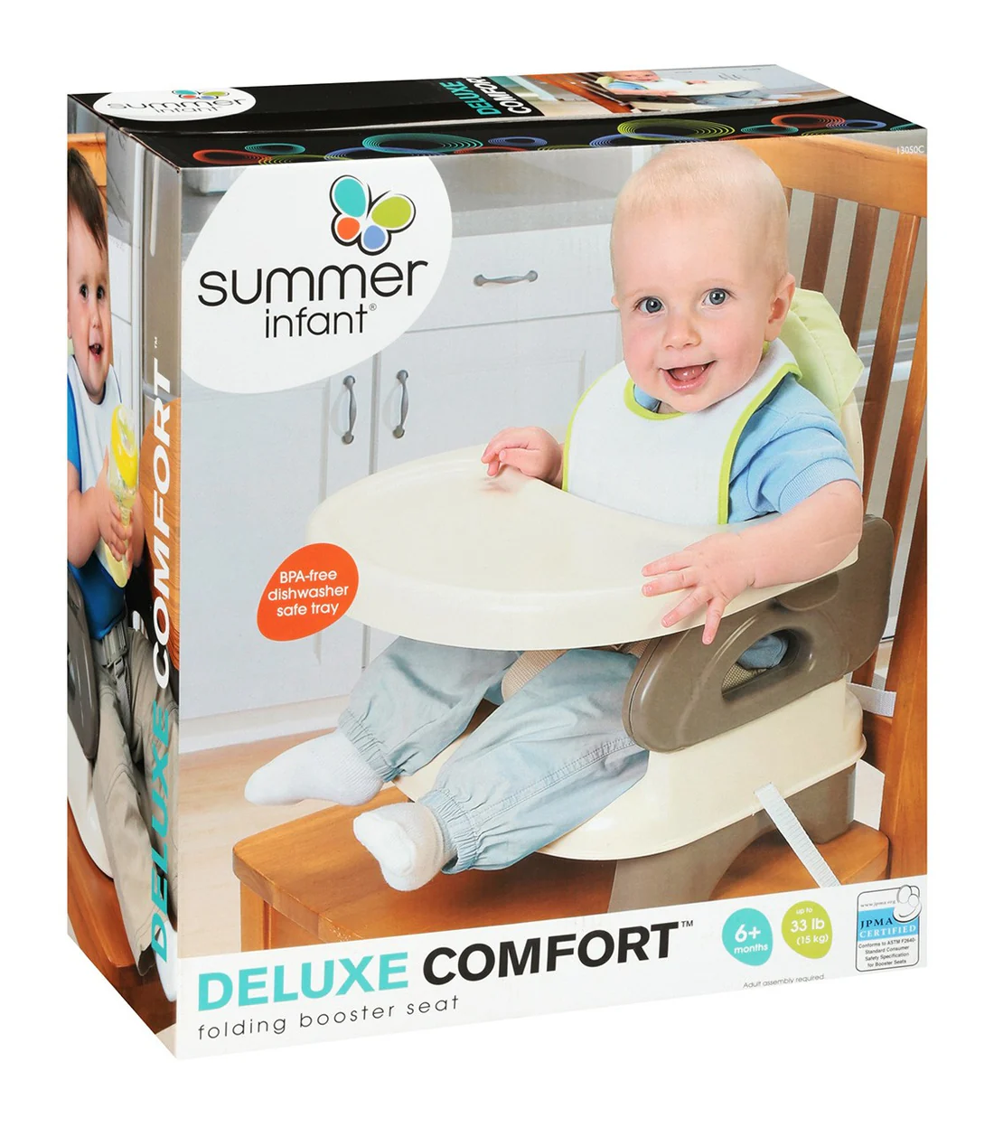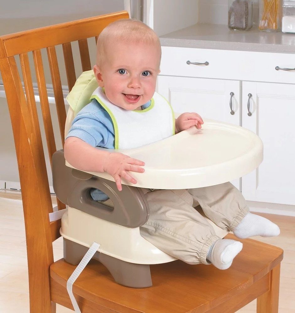 This Summer Infant booster seat offers a safe and secure space for feeding babies 6+ months, up to 33 lbs (15 kg). It features a BPA-free, dishwasher-safe feeding tray that makes cleanup quick and simple. The booster has a folding design for easy portability and comes with safety straps to secure it to most dining chairs. A comfortable, compact, and supportive seat that grows with your child through mealtime milestones.