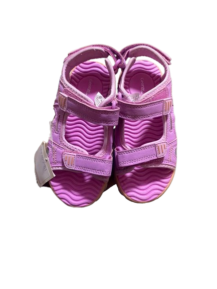 These vibrant George sport sandals feature multiple straps in shades of pink and lavender for a feminine, sporty look. The design includes three adjustable hook-and-loop (Velcro) straps for a secure, comfortable, and easy-to-manage fit. The flexible, wavy-textured footbed and sturdy sole make them perfect for playground fun and summer adventures. A durable and bright sandal that offers protection and support for active little feet.