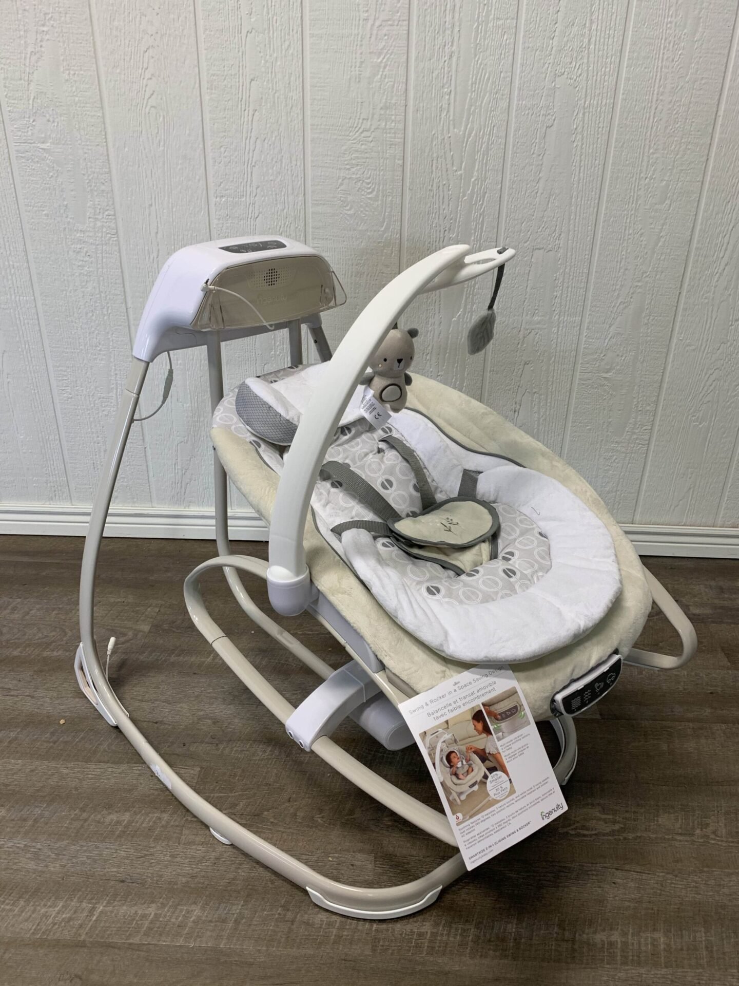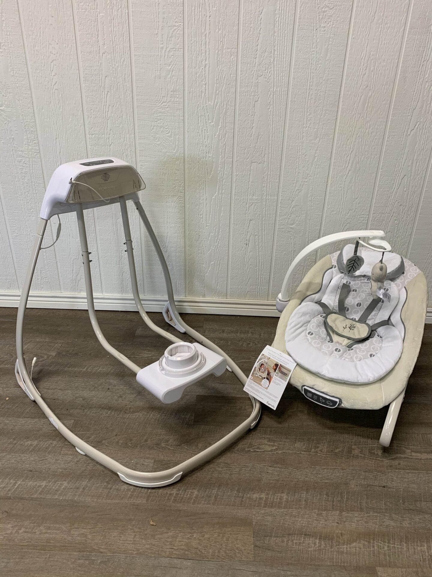 Two-in-One Design: It easily changes from a full-sized swing that gently glides your baby to a removable seat you can carry around and use as a rocker.
