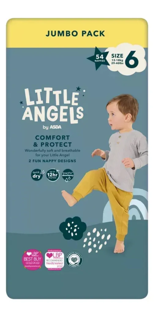 Little Angels Size 6 Nappies feature smart absorbency technology.