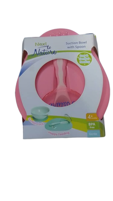 Next to Nature Suction Bowl With Spoon features a strong suction base to reduce spills and a gentle spoon for safe feeding. It supports calm, mess-free mealtimes during early weaning and self-feeding stages.