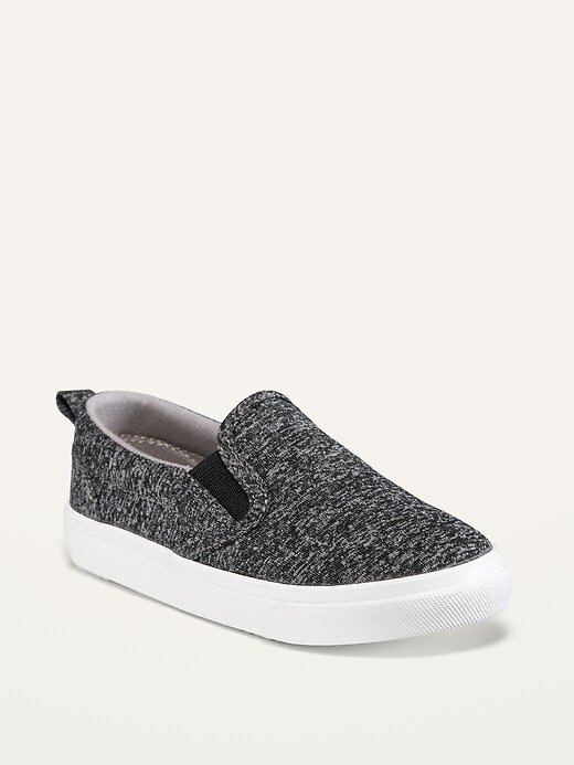 These cool Old Navy slip-on sneakers feature a modern black and grey space-dye knit fabric. Designed for easy wear, the elasticated sides and pull-tab allow children to put them on and take them off quickly. The simple, stylish design and white contrast sole make them a versatile choice for casual everyday wear. These comfortable and lightweight shoes are an essential addition to any kid’s wardrobe.