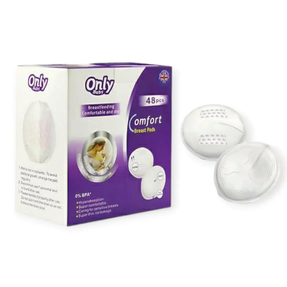 These Only Baby Comfort Breast Pads keep you comfortable and dry. The pack contains 48 disposable pieces for great value. They provide exceptional care for sensitive breasts. These pads contain 0% BPA materials. They feature a unique ultra comfortable arc fit. This curve closely matches the mother’s chest curve.