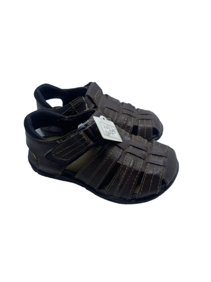 These durable Smart Fit sandals feature a classic brown closed-toe design for extra protection. Made with a woven leather-look upper and secured with an adjustable hook-and-loop (Velcro) strap. The sturdy sole and comfortable straps make them ideal for active play and summer adventures. A smart, practical choice that offers both style and coverage for your child’s feet.