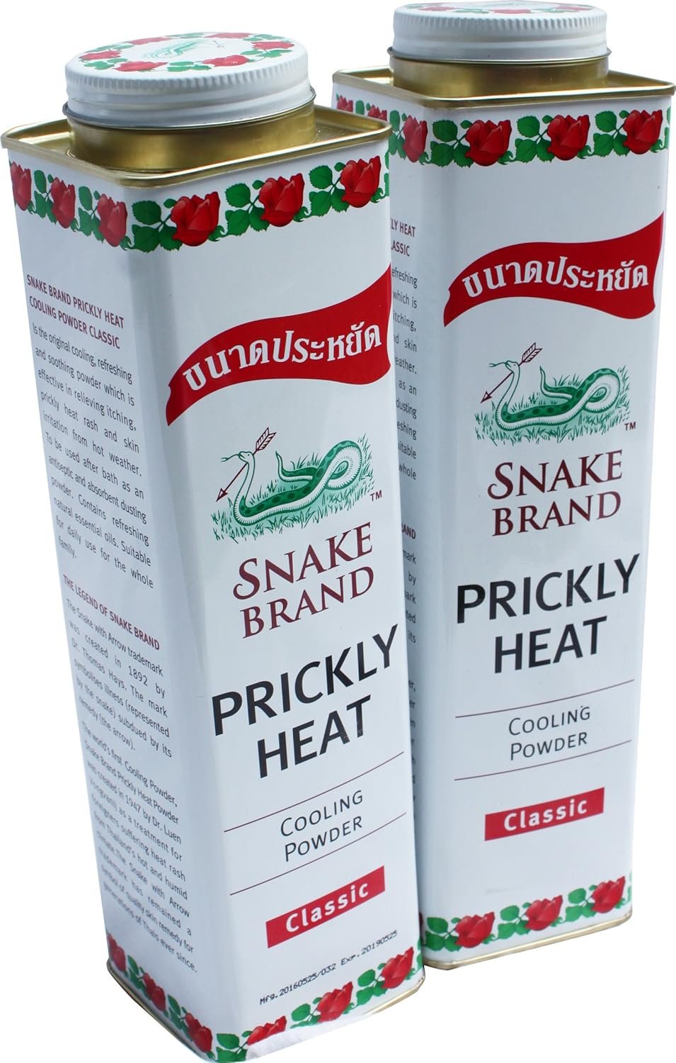 Snake Brand Prickly Heat powder, developed over 60 years ago, is the original cooling powder, refreshing and soothing powder which is effective in relieving itching, prick heat rash and skin irritation from hot weather.