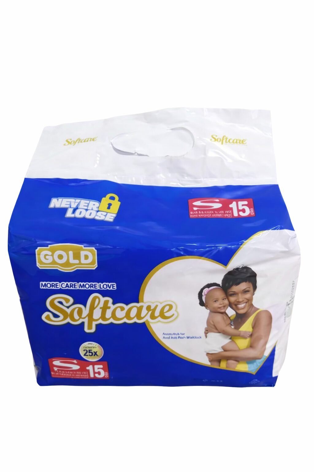 Softcare Gold Diapers Small 15 Pack provide reliable comfort and protection for babies.