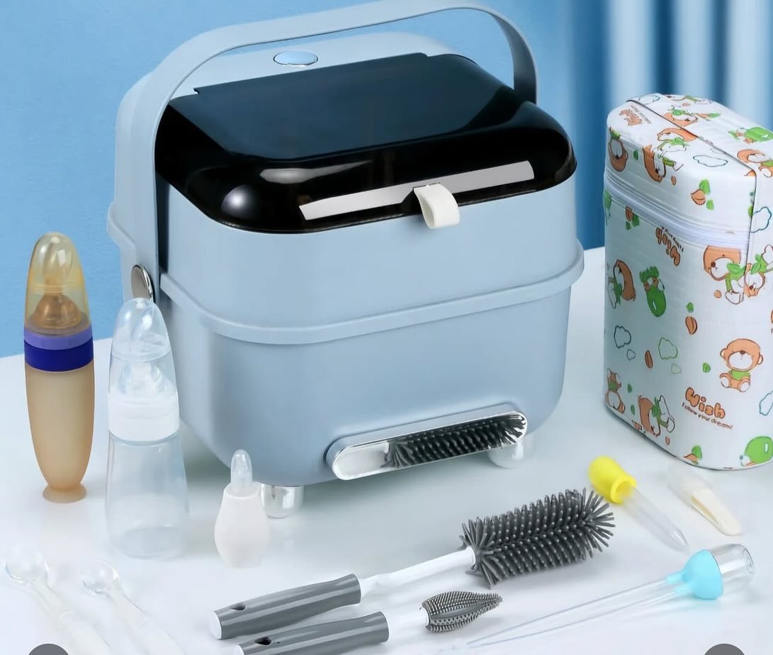 This Tenbabe Storage Box helps you organize baby essentials easily. It provides a clean, contained space for several items. The box is made from safe PP material. It offers high temperature resistance for sanitizing tools. This feature suggests the box is suitable for sterilization or drying. The box promotes a clean and thorough environment for baby items.