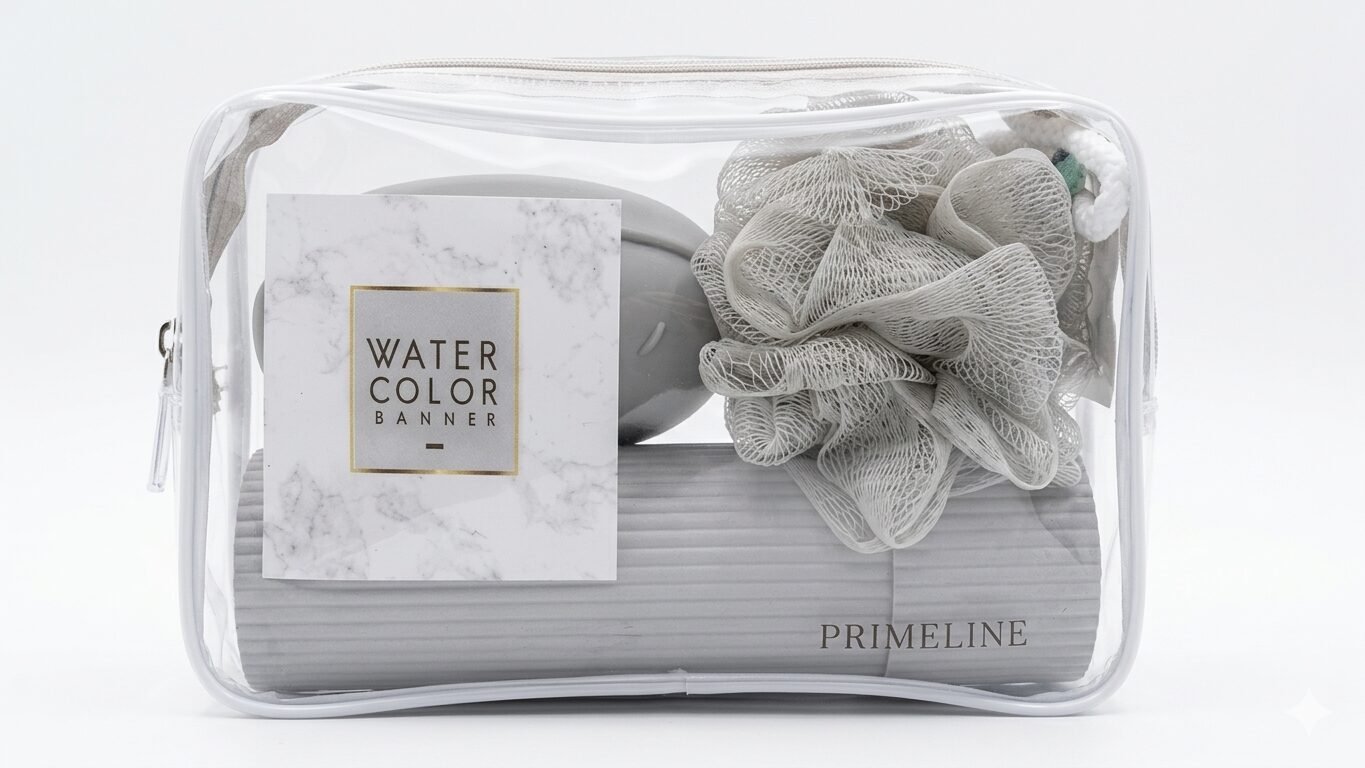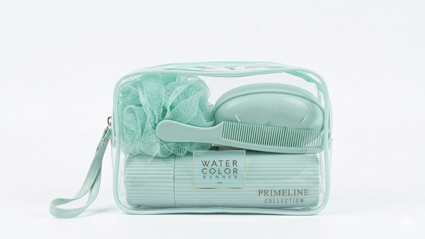 This Water Color Sponge Bag set serves the modern parent who values organization and hygiene. It features a soft, minimalist aesthetic. You get every essential needed to keep your baby fresh and comfortable in one durable, clear case.